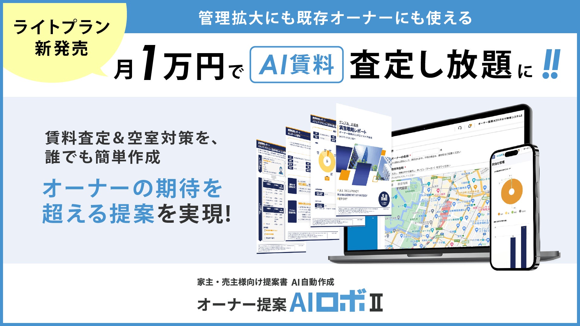 【新発売】オーナー提案AIロボII、ライトプランを発売 月1万円でAI賃料査定を無制限に活用可能
