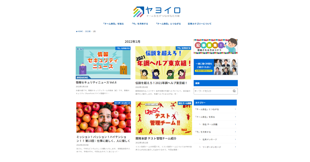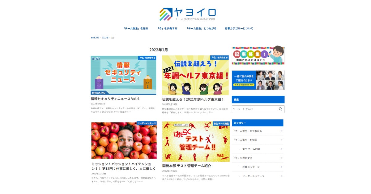 - 年間300本以上の記事を発信。社員の半数が週1回以上訪問するWeb社内報「ヤヨイロ」-