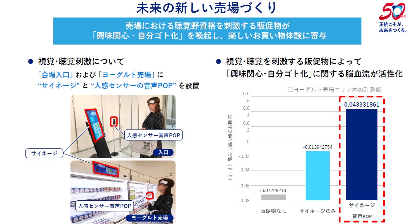 1つ目は、24年春発売予定の新商品について、2つ目は千葉県柏市にある柏の葉スマートシティ全体のウェルネス向上を目指して行う取組み「ヨーグルトで街にミライをプロジェクト」について、3つ目は未来の新しい売場づくりを目指し、明治が独自で実施をした「脳血流計測を用いた売場検証」です。