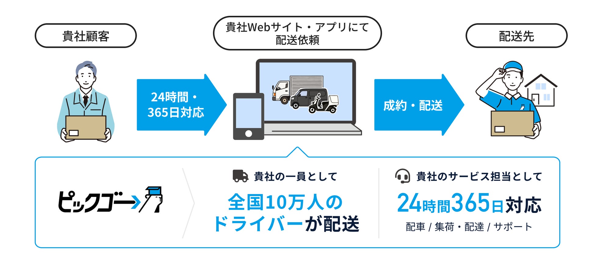 導入企業は、物流システムや専門のサポート部門をゼロから立ち上げる手間やコストを大幅に削減し、独自の配送サービスを迅速に開始できます。これにより、企業は本来のコア業務にリソースを集中させ、事業領域の拡大に注力することが可能になります。