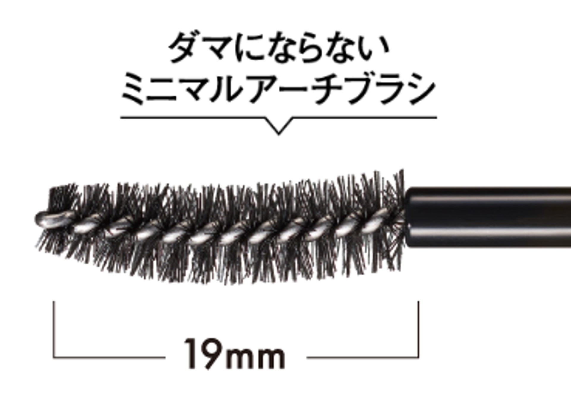3次元に広がる特殊繊維を採用した小回りのきく19mmのミニマルアーチブラシで、細く短いまつげも逃さずキャッチ。塗り重ねてもダマになりません。