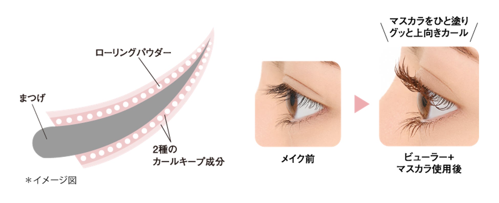 ローリングパウダー*2配合で、繊維なしでもしっかりスルスル伸びるロング感。