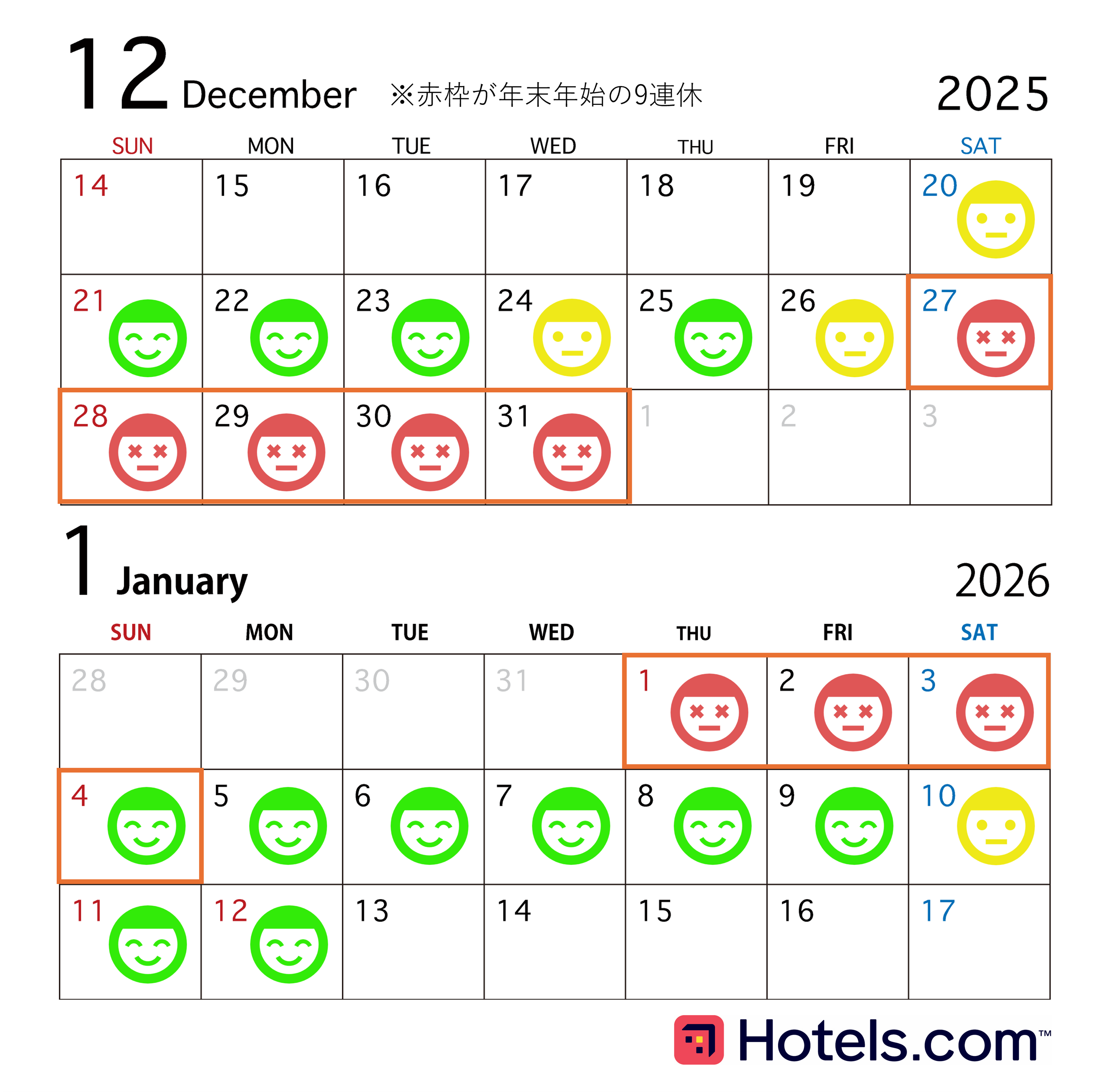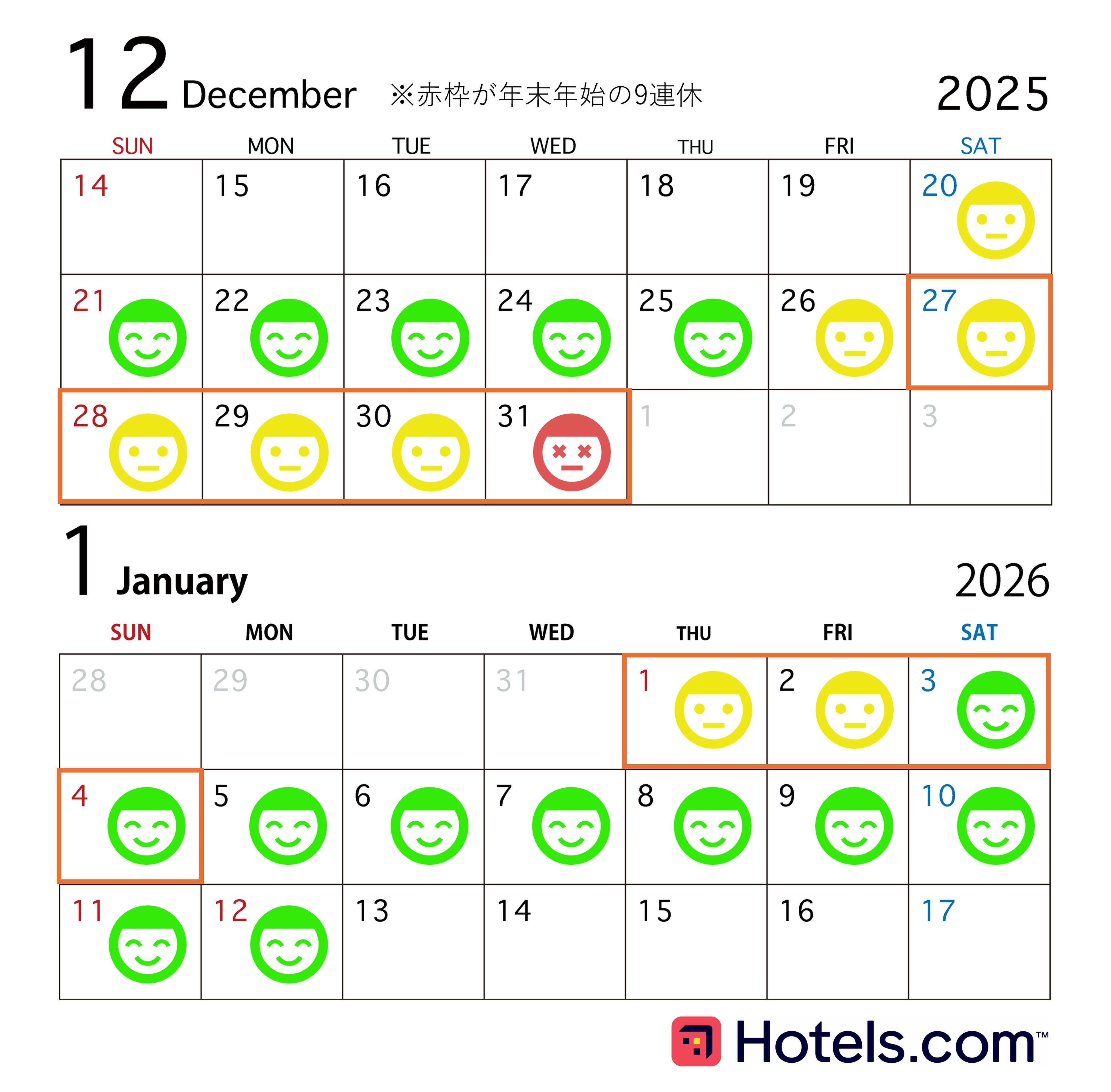 ■最大9連休!年末年始の混雑予想とおすすめ旅行日程