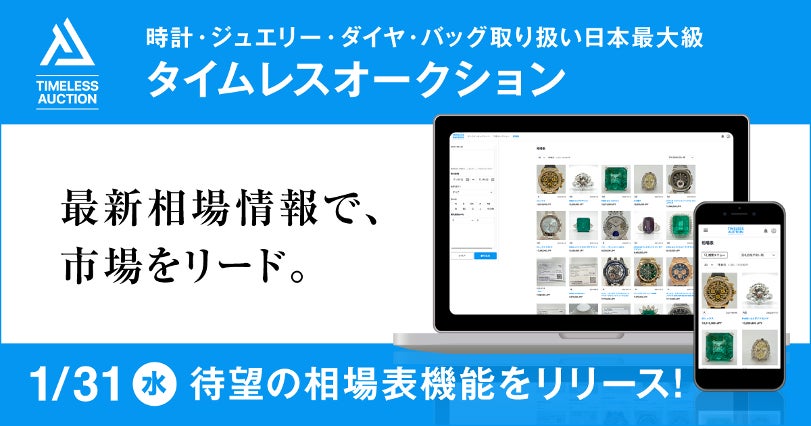株式会社BuySell Technologies(本社:東京都新宿区、代表取締役社長兼CEO:岩田 匡平)のグループ企業である、株式会社タイムレス(本社:東京都港区、代表取締役社長:太田 大哉)が運営するBtoBオークション「タイムレスオークション」において、オンラインオークションの落札価格を検索できる「相場表トライアル版」を2024年1月31日より提供開始します。