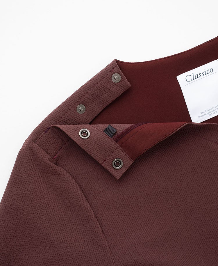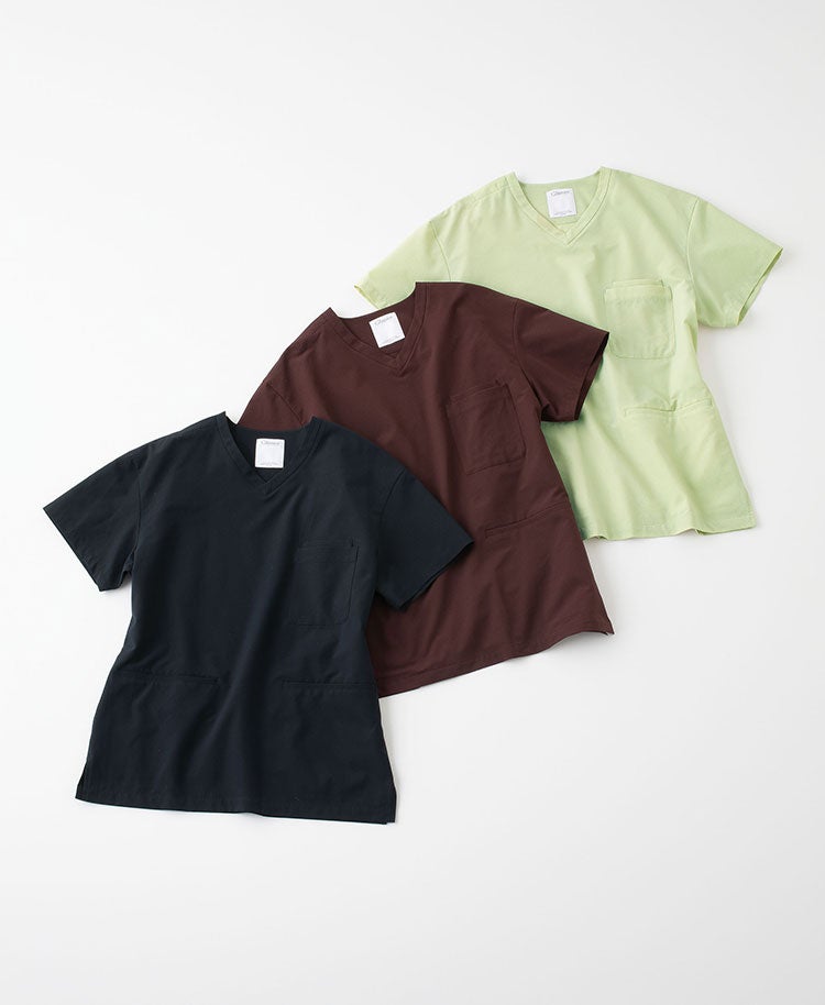 スタンダードなシルエットに、素材の良さを活かしたシンプルなデザイン。胸元には便利なダブルポケットを配し、機能性にも配慮しました。ドロップショルダーと脇スリットが、程よい抜け感と動きやすさを両立させています。