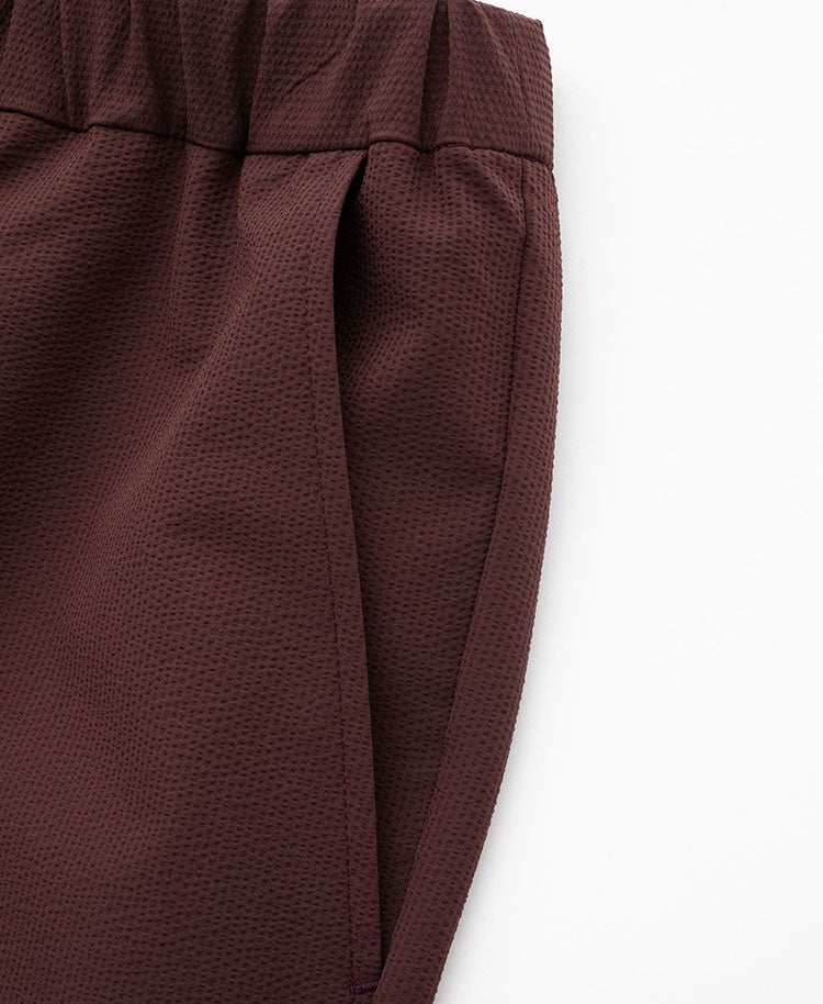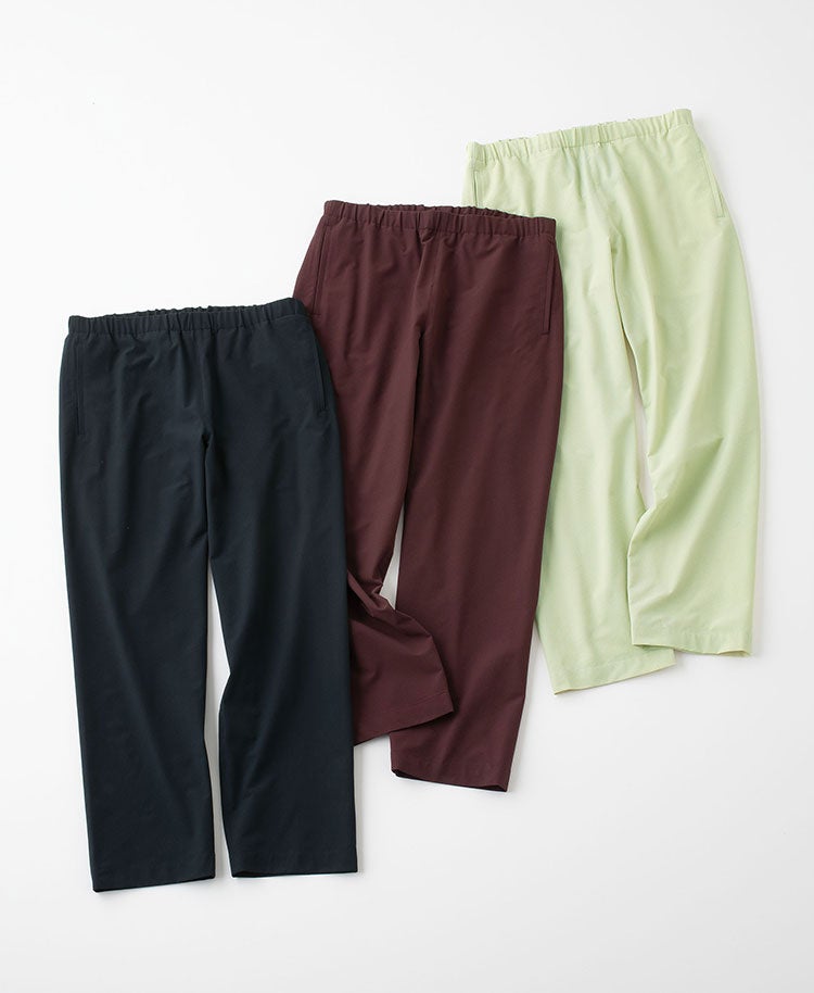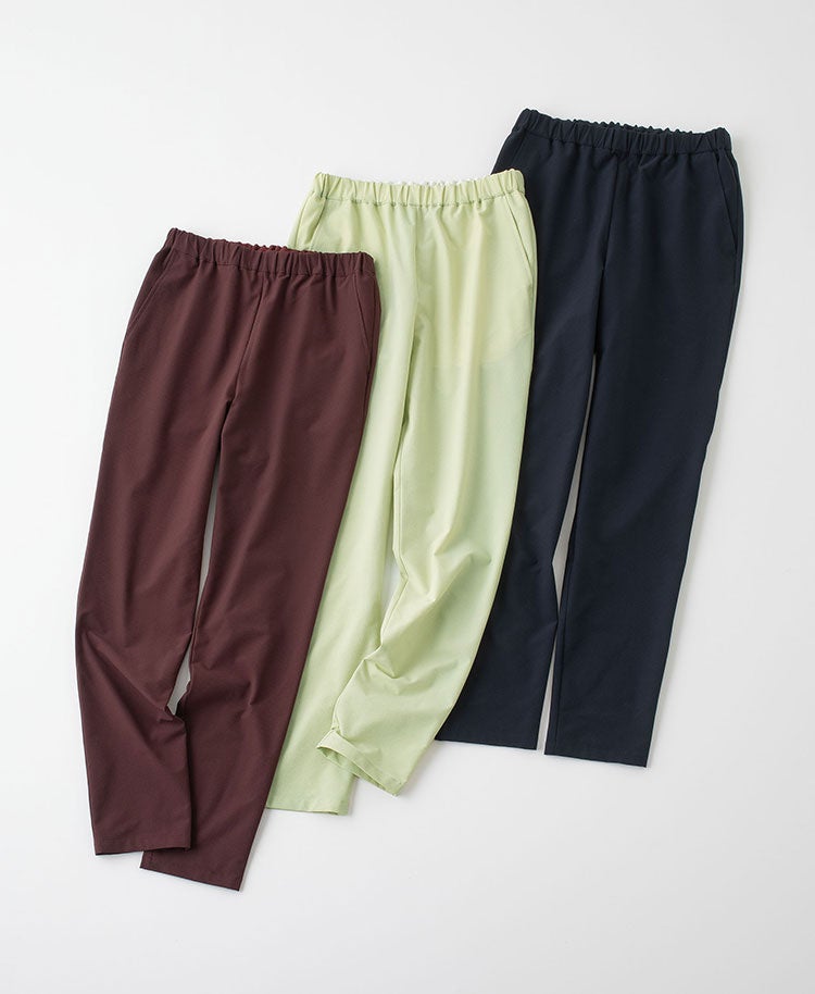 すっきりとしたテーパードシルエットで、脚を美しく見せるバランスの取れたデザイン。腰元の裏地にはサテン素材の別布を使用し、肌あたりにもやさしく配慮しました。