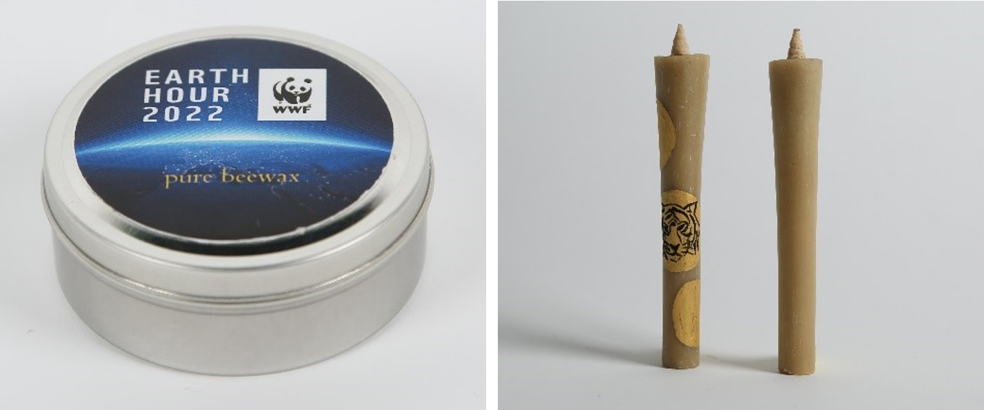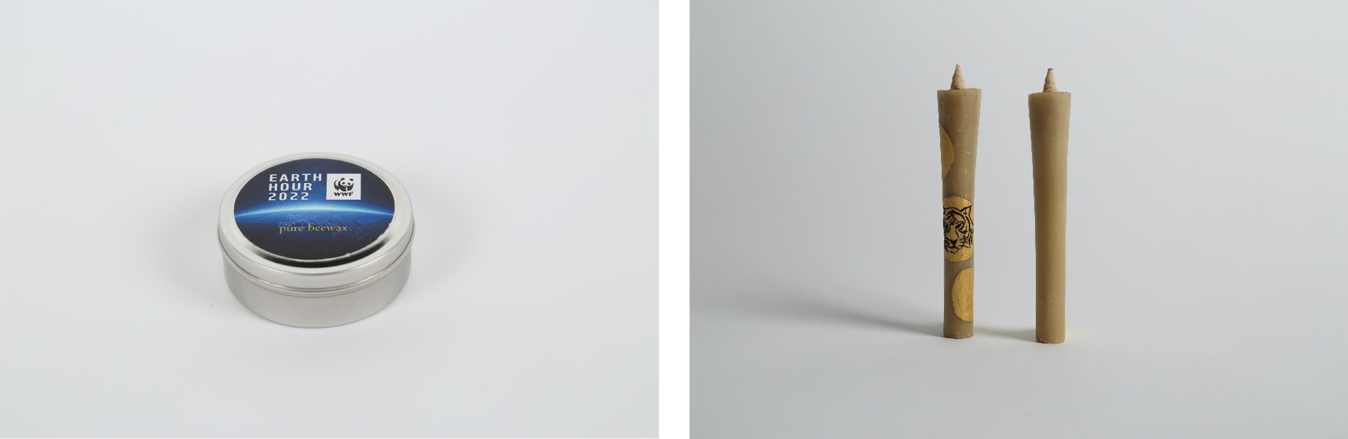 ミツロウアロマキャンドル(左)、手描き和蝋燭・トラ(右)EARTH HOURは、世界中の人びとが同じ日・同じ時刻に消灯することで、地球温暖化防止と環境保全の意志を示す、世界最大級の消灯アクションです。PANDA SHOPでは、「EARTH HOUR2022」に合わせ、電気を消している1時間、地球環境のことに想いを馳せ、温もりのあるキャンドルの明かりで夜を楽しんでいただきたいという想いから、持続可能な製品づくりをする Wildtreeと松井本和蝋燭工房とコラボし、オリジナルキャンドル2種を制作しました。