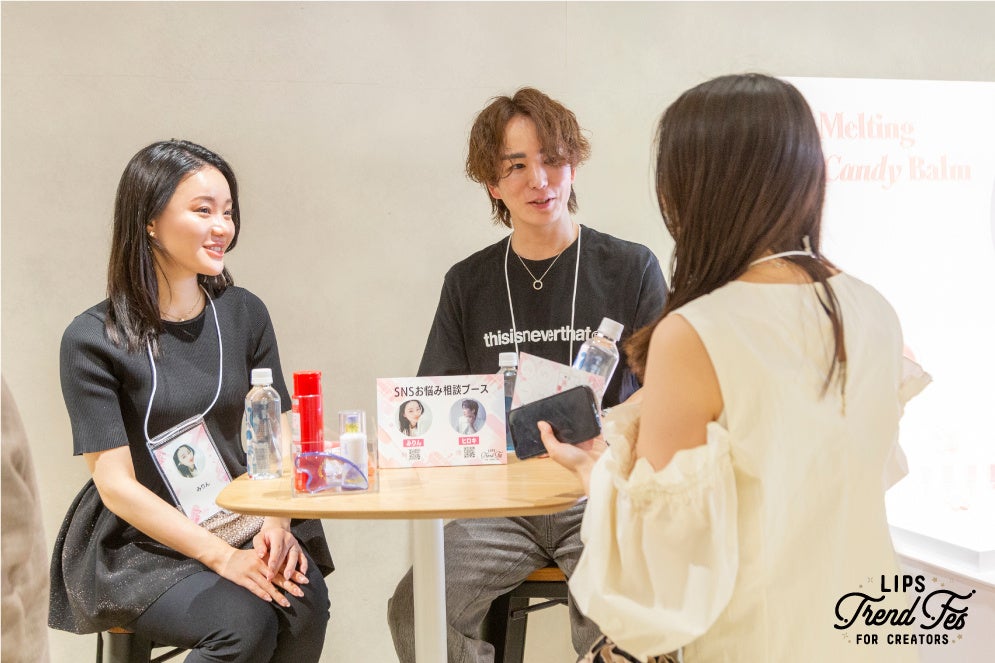 お悩み解決トークスペースを設置。SNS活動でのお悩み、メイクやコスメ選びのお悩みなどここでしか聞けないお話を多くの参加クリエイターにしていただきました。