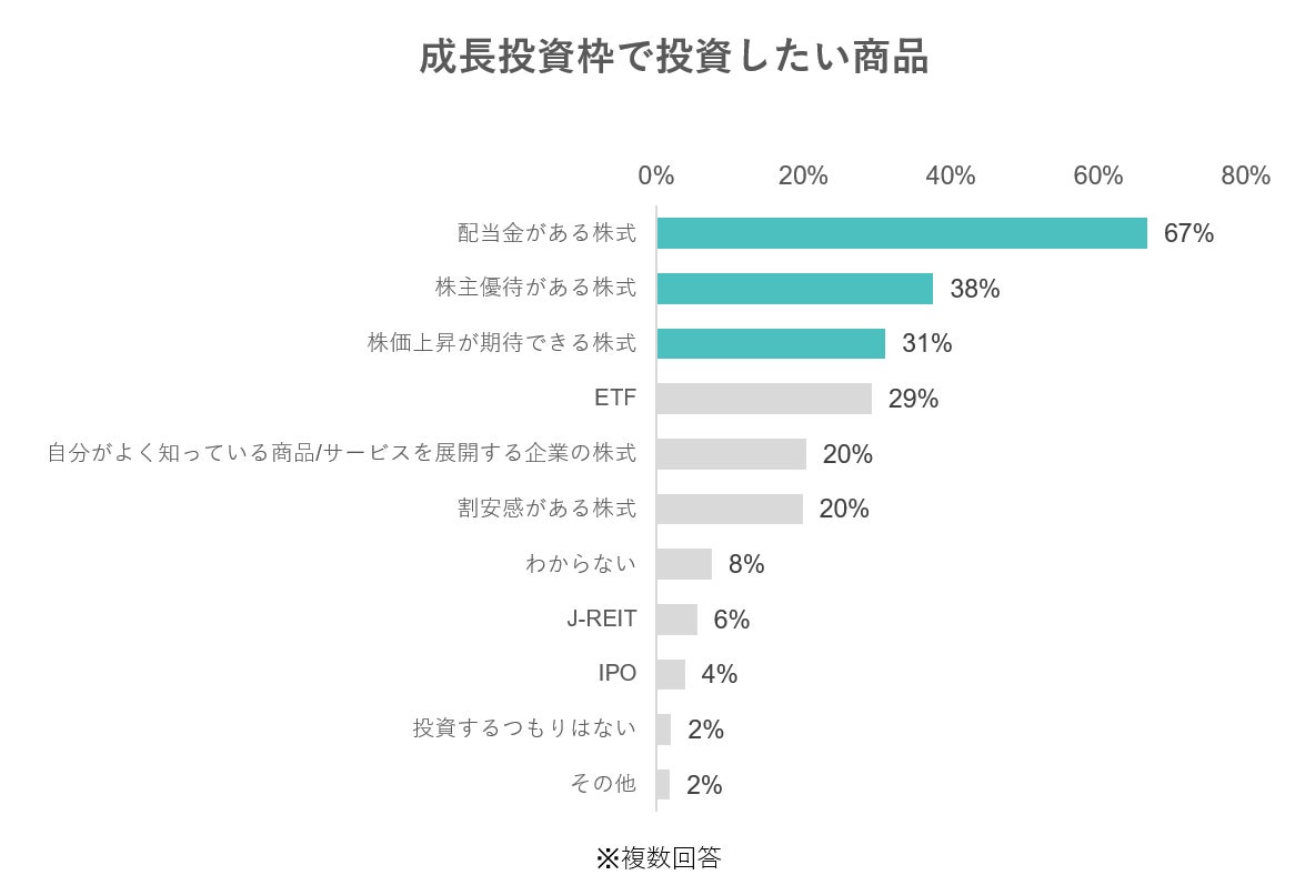 - 成長投資枠で投資したい商品は「配当金がある株式」がトップ