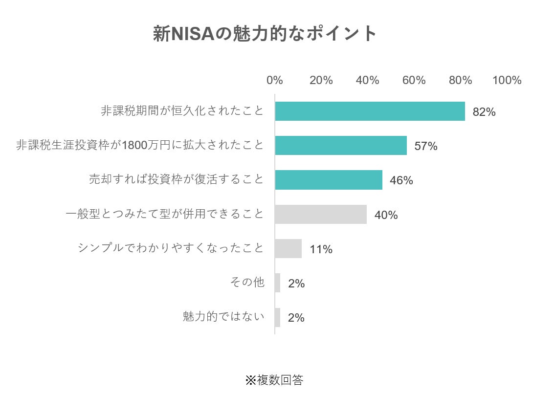 - 新NISAで魅力的だと思うポイントは「非課税期間が恒久化されたこと」がトップ