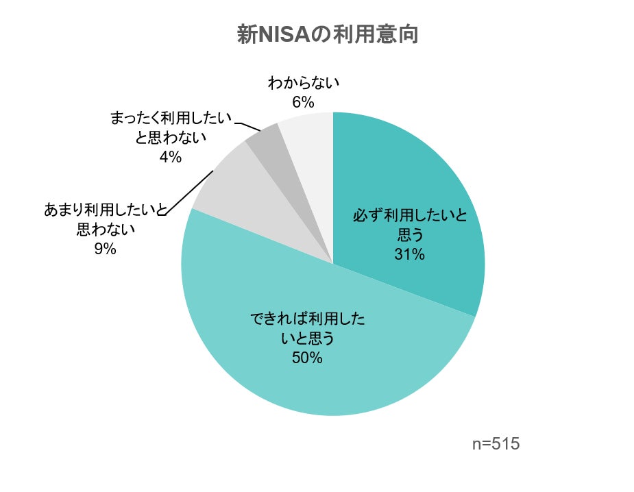 - 新NISAの利用意向は81%(新NISAを認知している人のうち「必ず利用したいと思う」「できれば利用したいと思う」と回答した人の割合)