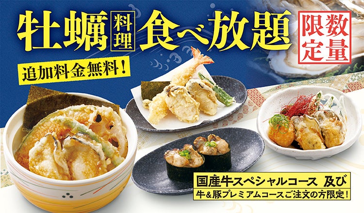 - 牡蠣天丼や牡蠣軍艦など限定メニューが食べ放題!!