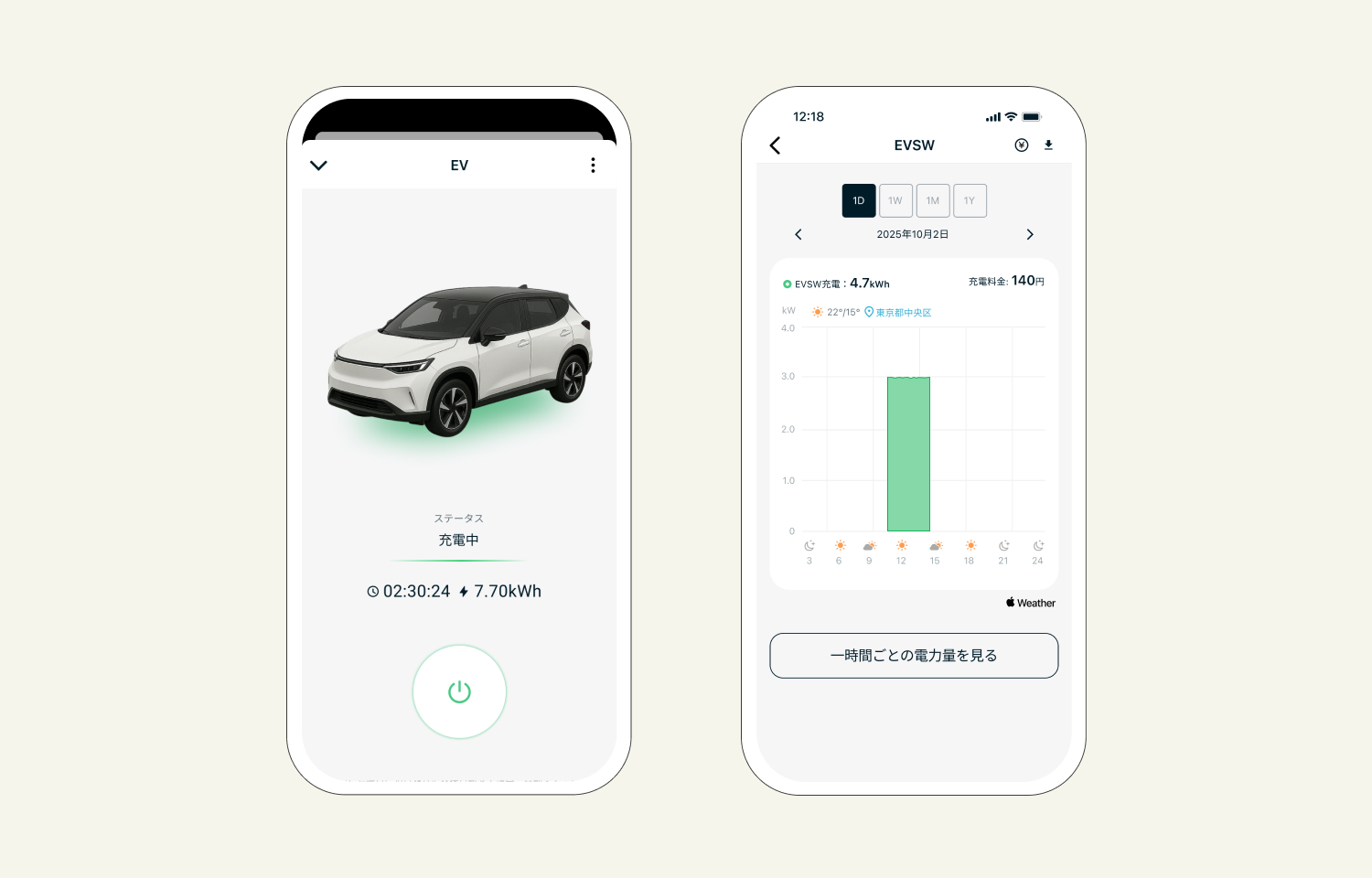 EVに充電ケーブルを挿しておけば「Nature Home」アプリからいつでもどこでも充電をスタート/ストップできます。