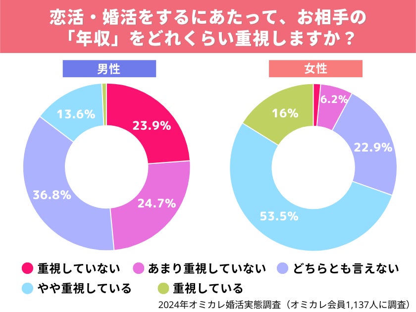 男性は女性の職業・年収を重視しない傾向にありますが、女性は男性に対してそれらを重視する傾向が強めになっています。