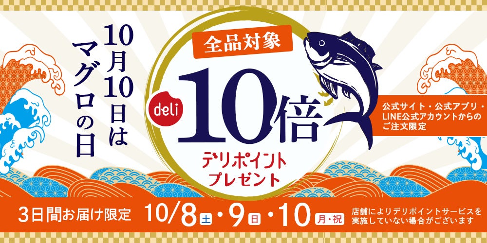 公式WEBサイト・アプリからのご注文で、「デリポイント」10倍プレゼント