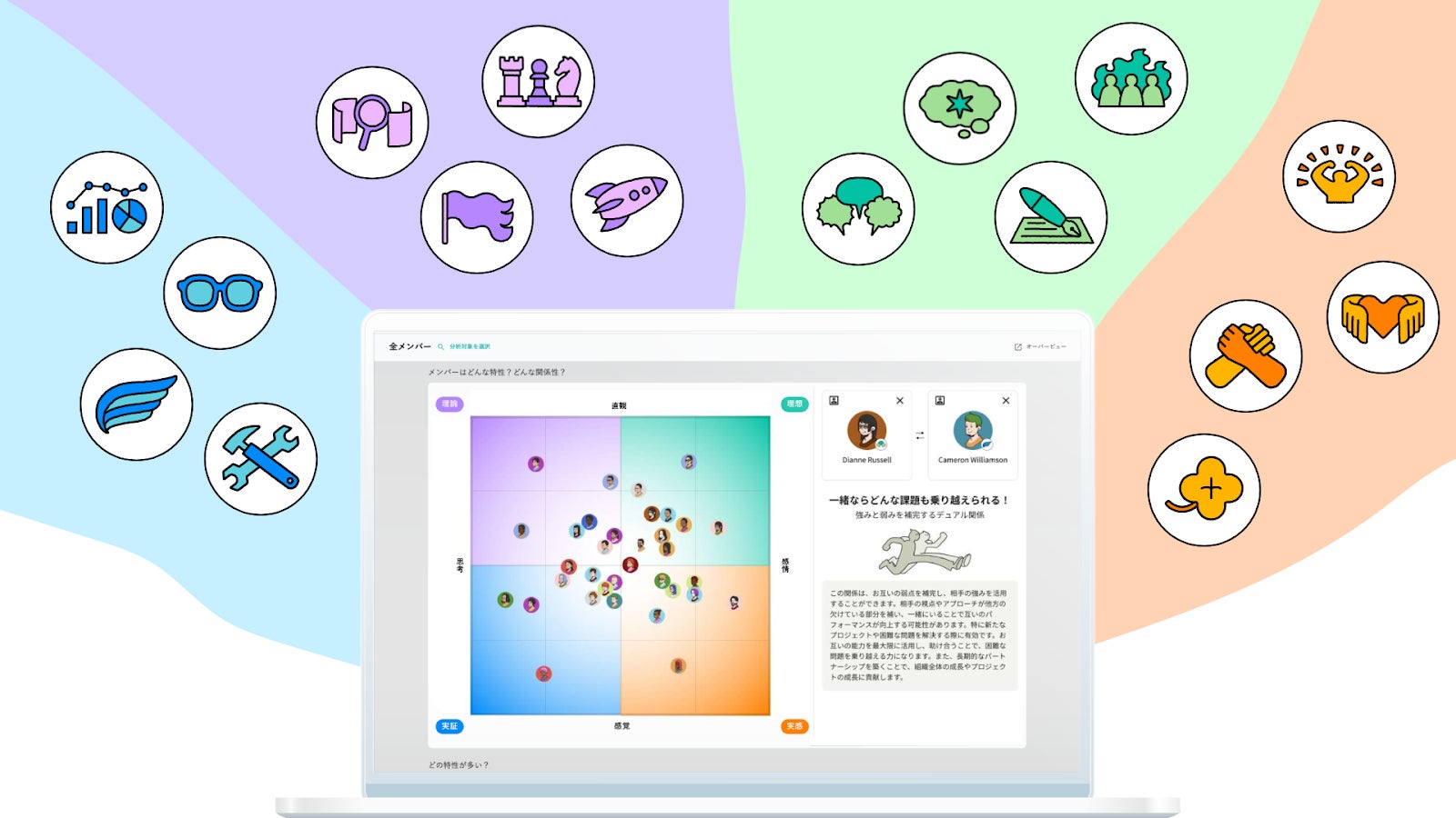 個人特性診断の結果は、職場におけるコミュニケーションのヒントや相互理解のきっかけとして、メンター制度や人事配属におけるマッチングにもご活用をいただいています。