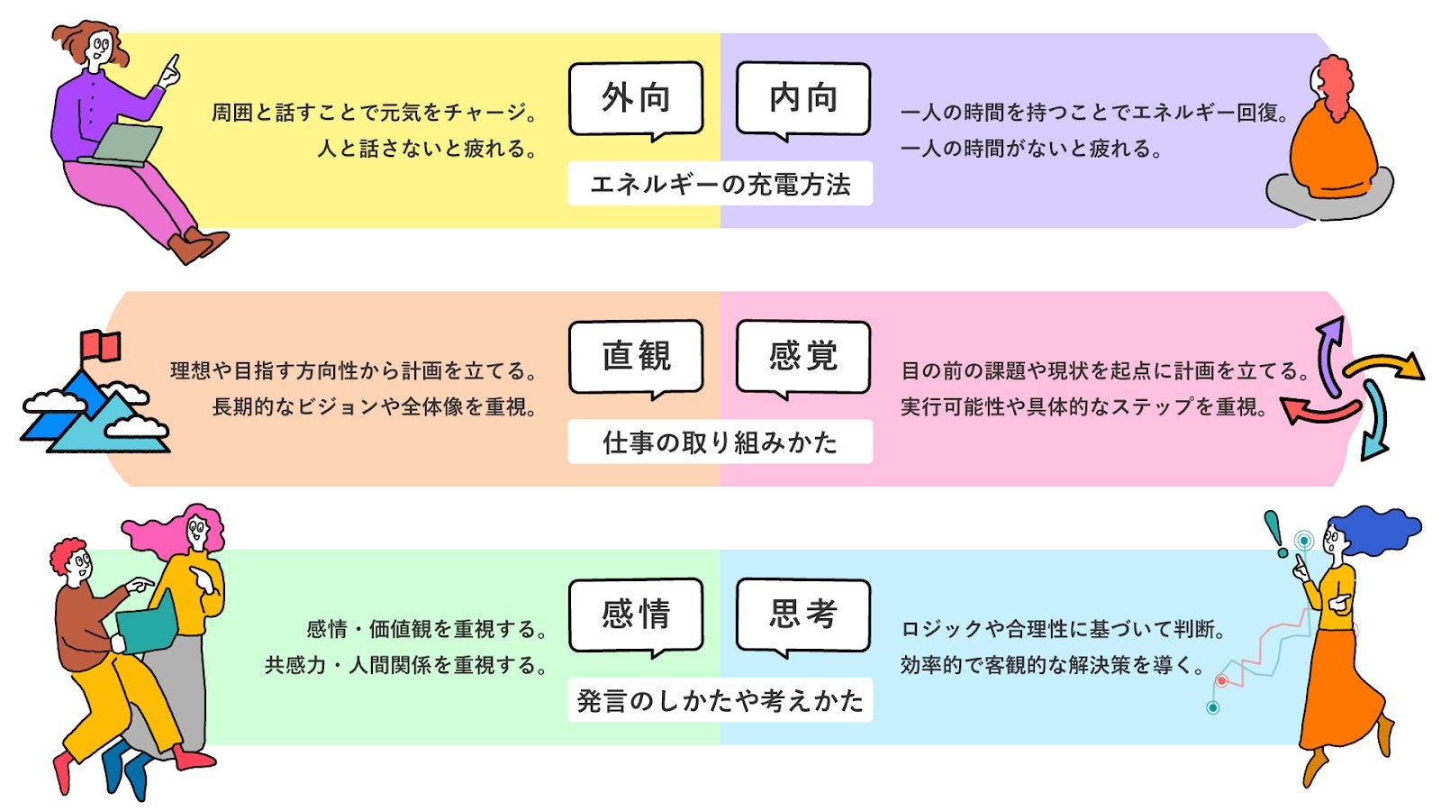 金融業界では、「外向」や「感覚」が優位な特性を持った方が多く、ビジネスシーンにおいて営業などの対人コミュニケーションが求められる業務が多いことなどが考えられます。