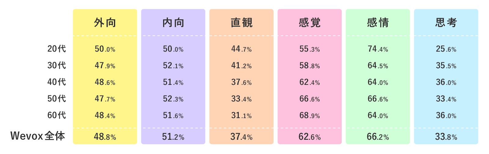20代は「感情」優位な特性を持った方が多いが、これがいわゆるZ世代と呼ばれる世代特有の傾向かは一概には断定しづらいと考えられます。ただ、30代以上とは同じメッセージに対しても受け取り方や解釈に大きな違いが出うるということは明らかと言えます。