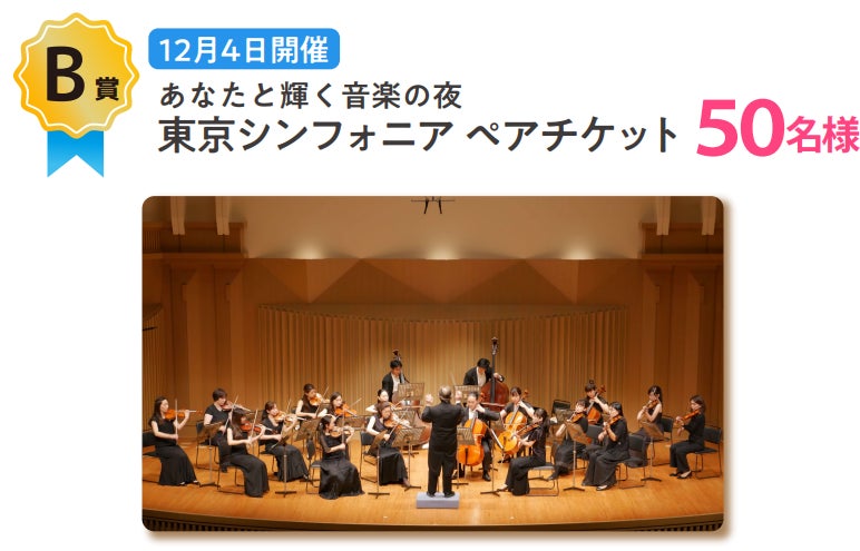 賞品と当選人数はA賞「Amazonギフトカード1万円分」 5名様、B賞「東京シンフォニアペアチケット」50名様、C賞「サンギ商品5アイテム詰め合わせ」45名様の合計100名様に当たります。3つの賞品のうち、いずれかを選んでご応募いただけます。