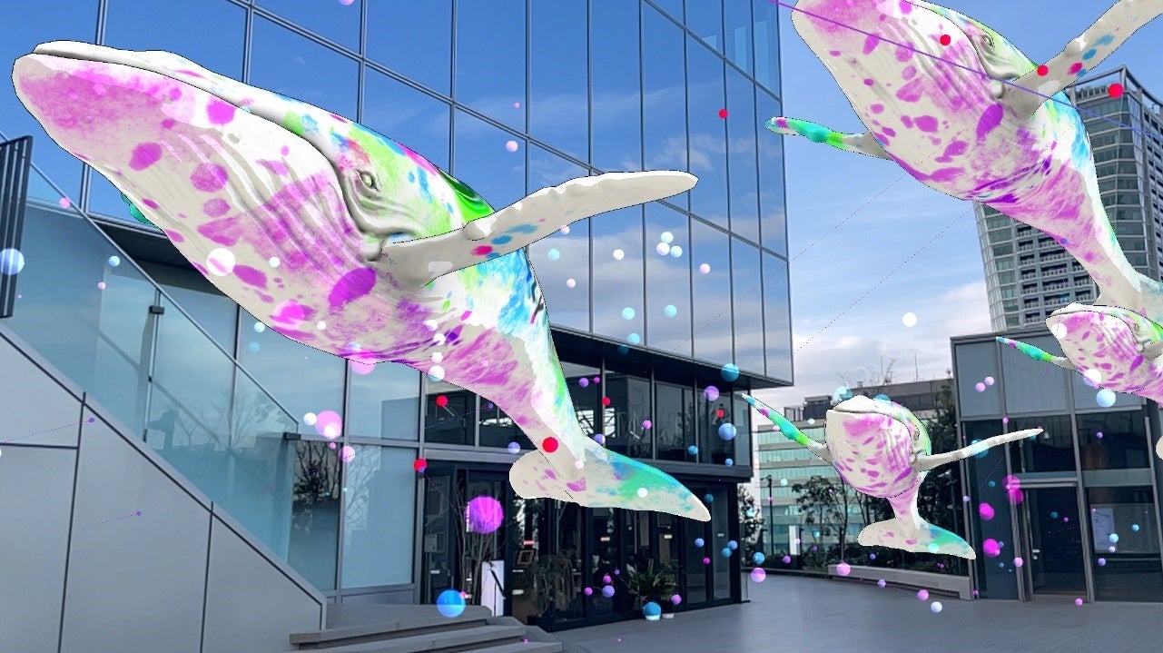 ・「XRscape」の対応場所において、空間上のさまざまな場所にコンテンツを配置し、その空間全体をジャックすることができます。コンテンツは静的なものだけではなく、ゲームなどのインタラクティブコンテンツにも対応しています。