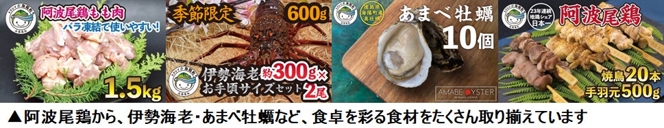 ▶▶▶海産物に恵まれた海陽町は、あまべ牡蠣や伊勢海老、鮮魚セットや干物なども見逃せません!焼き鳥串&手羽元セットも魅力的です。