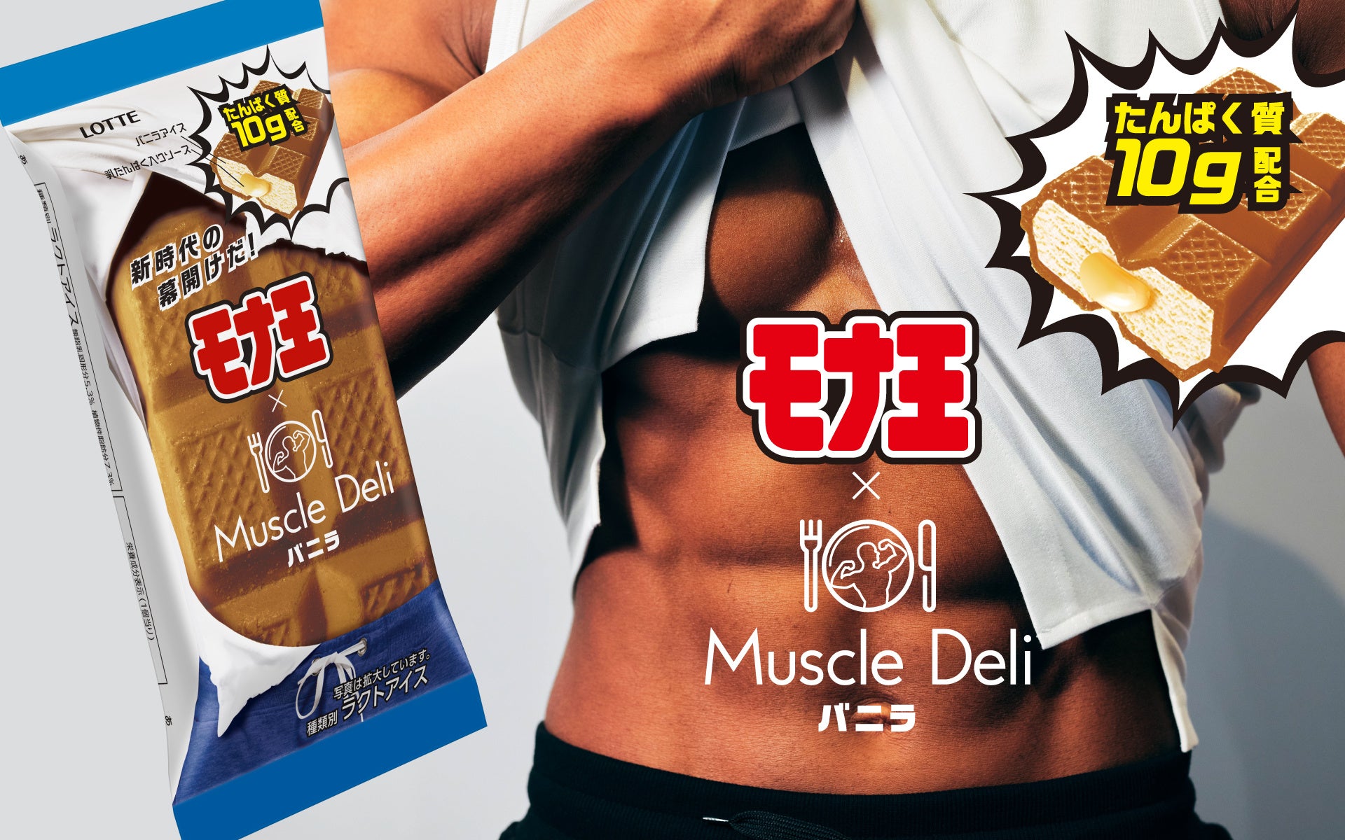 全国の筋トレ勢待望!タンパク質が10gとれるアイス「モナ王×マッスルデリ バニラ」がついにロッテ公式オンラインショップで初めて販売開始。
