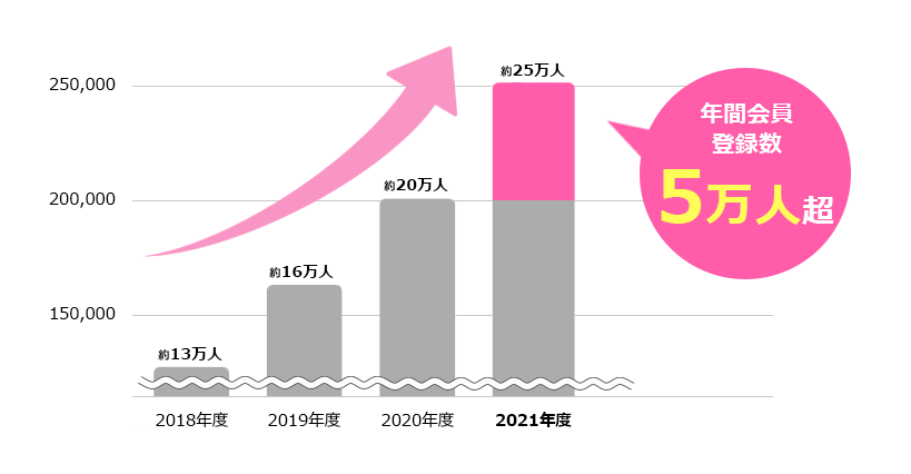 総会員数は2021年4月に20万人を突破、2022年3月に25万人に到達