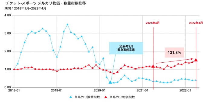 - スポーツ関連チケットの物価指数は、前年同月比で約1.3倍増
