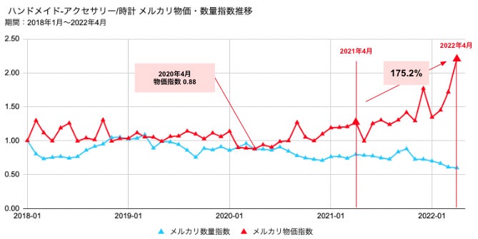 - ハンドメイドカテゴリーの「アクセサリー/時計」の物価指数が過去最高に