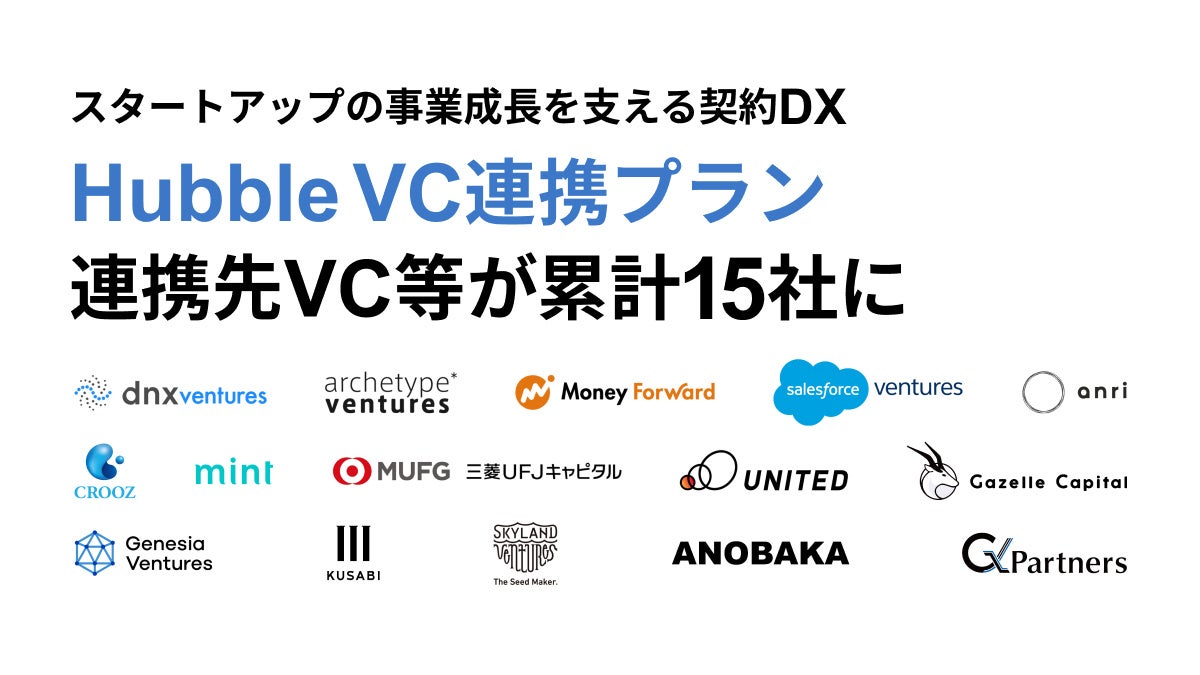 Hubbleを無料で導入できる「Hubble VC連携プラン」連携先VC等が累計15社に。スタートアップの事業成長を支える契約基盤を早期に構築可能