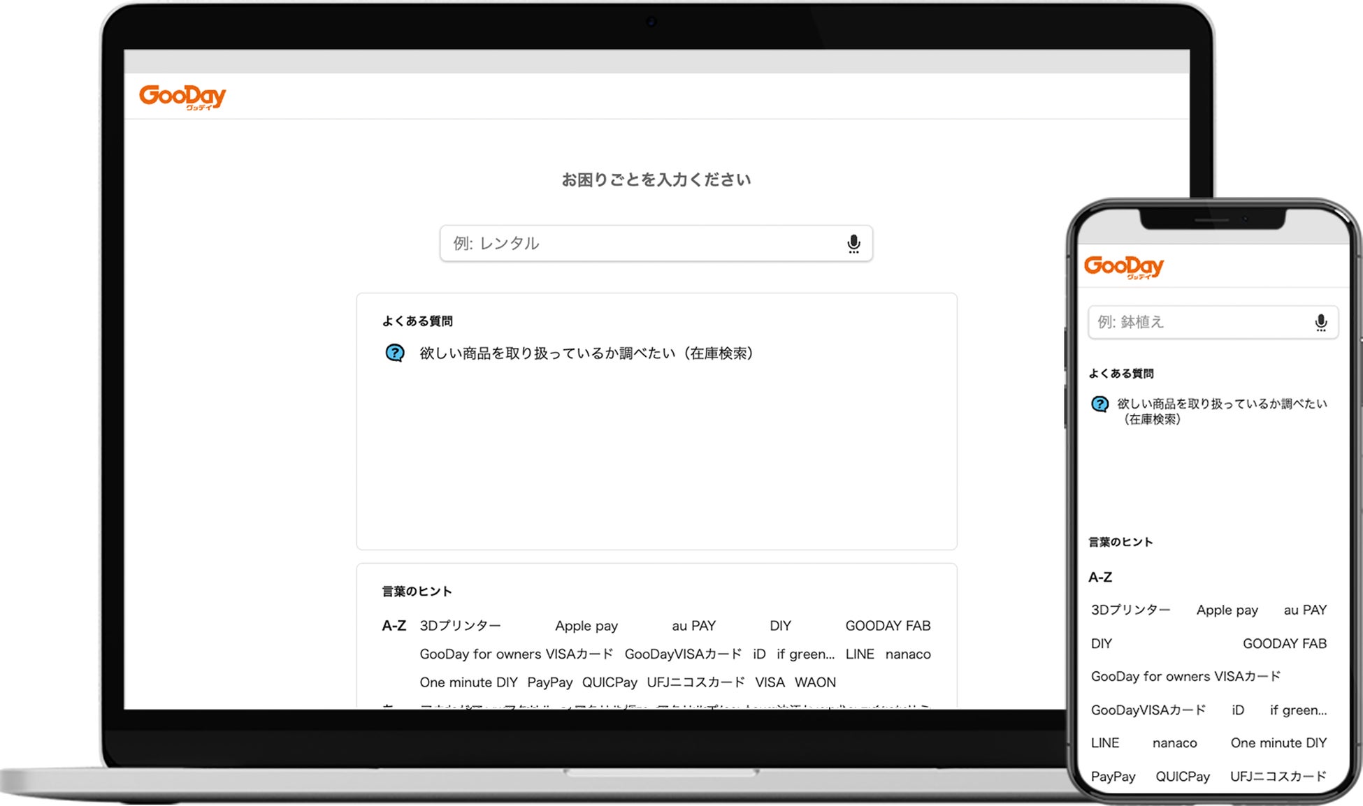 北部九州・山口を中心に、福岡・大分・佐賀・熊本・山口に64店舗のホームセンターを展開しているグッデイは、”家族でつくるいい一日”の企業理念のもと、ホームセンターの概念にとらわれず、商品の販売だけではなく、園芸やDIY等の様々なワークショップを開催のほか、子供のためのワークショップ博覧会「ワークショップコレクション」の開催等、‟学べるホームセンター”としてさまざまな体験や経験を数多く提供しています。ウェブサイト上のコンテンツ量が多いなか、お客様自身で必要な情報にたどり着くことができる検索SaaSを求めていました。そしてこの度、圧倒的な検索ヒット率によってサービスご利用者が必要な情報を発見できるFAQシステム「Helpfeel」の導入に至りました。具体的には、グッデイのウェブサイトを訪れた人が検索窓にキーワードを入力するだけで最適な商品ページに到達することができる機能を導入。サイト上でのキーワード検索機能を強化したことで、サイト訪問者に対してコンシェルジュのような対応を行うことが可能になりました。グッデイ社とNotaでは、商品の検索性をより一層向上させることで、ユーザビリティを高めつつサービスサイト内の回遊性を高め、ウェブサイトのさらなる利便性の向上を目指します。