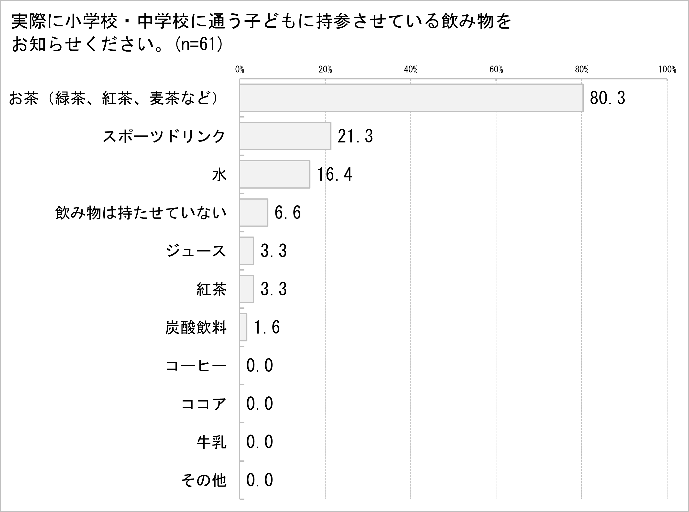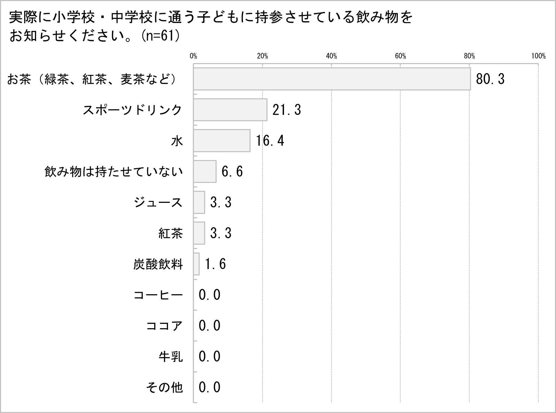 9月以降も休み明けの通学や運動会など熱中症に気を付ける必要があるなか、熱中症対策に活用できるアイテムとしてスポーツドリンクを保冷できるステンレスボトルを知っていただくとともに、スポーツドリンクを入れた際の正しいお手入れ方法を周知していく必要があると考えます。