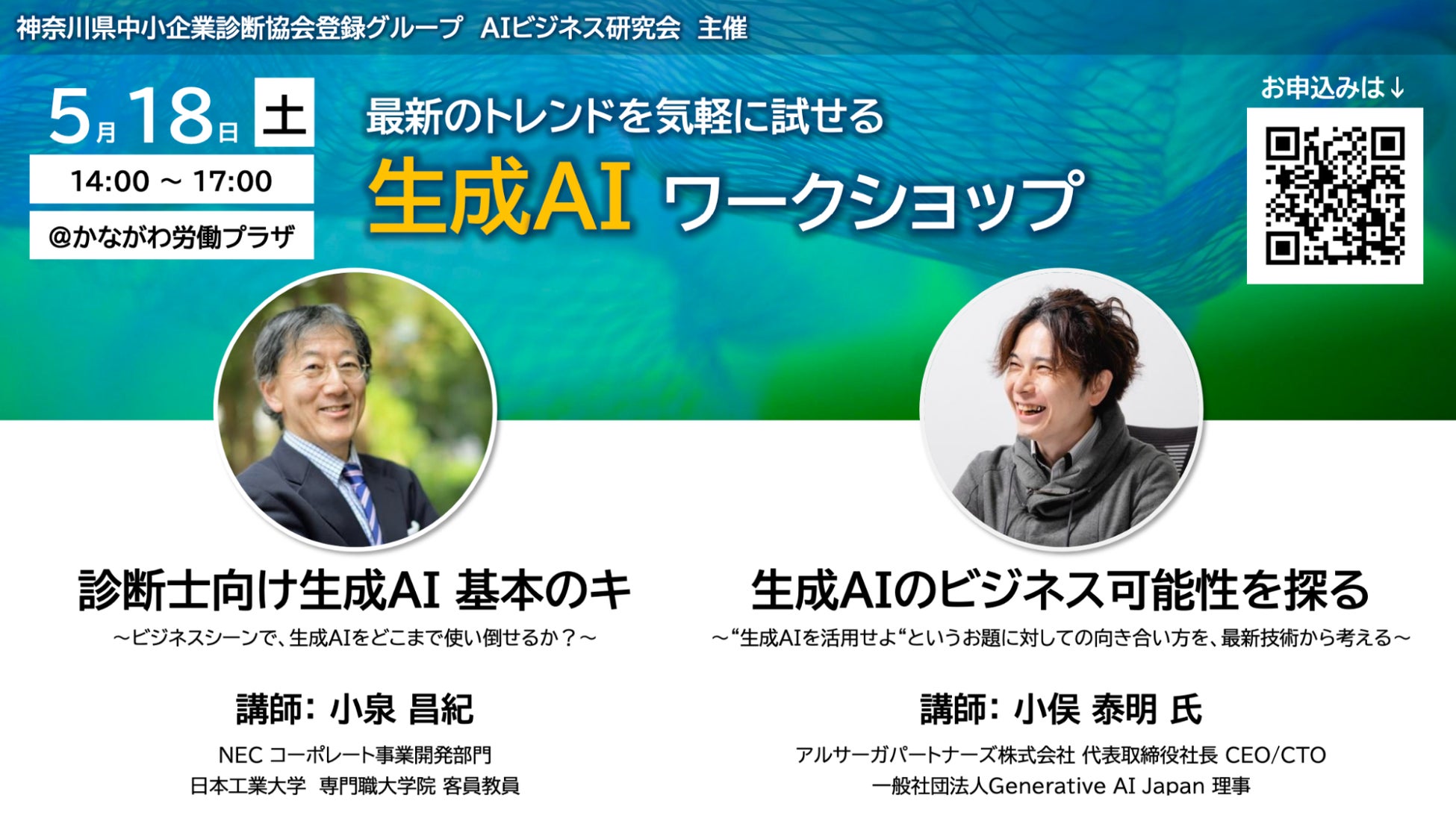 企業のDXを促進するアルサーガパートナーズ株式会社(本社:東京都渋谷区、代表取締役 /CEO・CTO:小俣泰明、以下「アルサーガパートナーズ」)は、2024年5月18日(土)、AIビジネス研究会が主催する生成AIに関するワークショップに、弊社代表の小俣が登壇しましたので、そのイベントレポートを公開します。