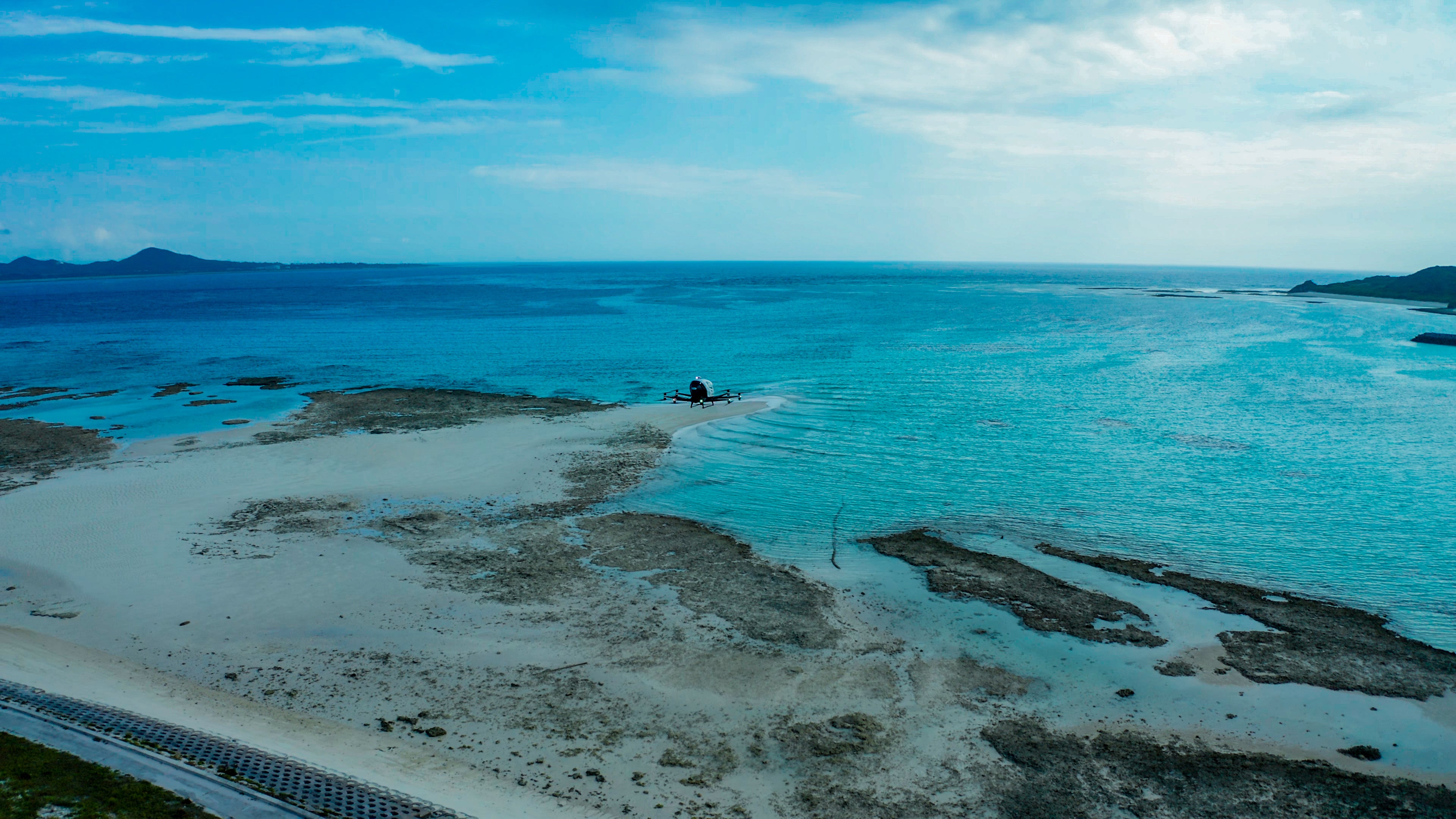 アジア初!沖縄県伊平屋島にて、海上を移動する2地点間の飛行に成功
