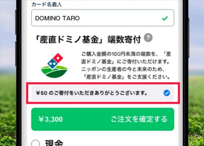 「産直ドミノ基金」では、『クワトロ・産直ドミノ』のお買い上げ1枚につき10円を、社会や環境問題の改善に取り組む生産者の活動支援に充てさせていただきます。また、100円未満の端数を切り上げて支払い、差額を寄付いただくことも可能です。*