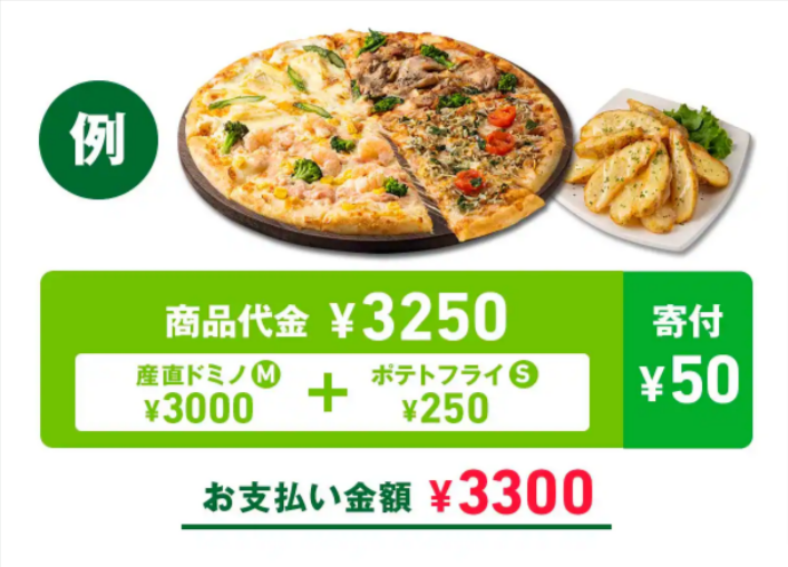 【『クワトロ・産直ドミノ』を食べると、1枚につき10円寄付】