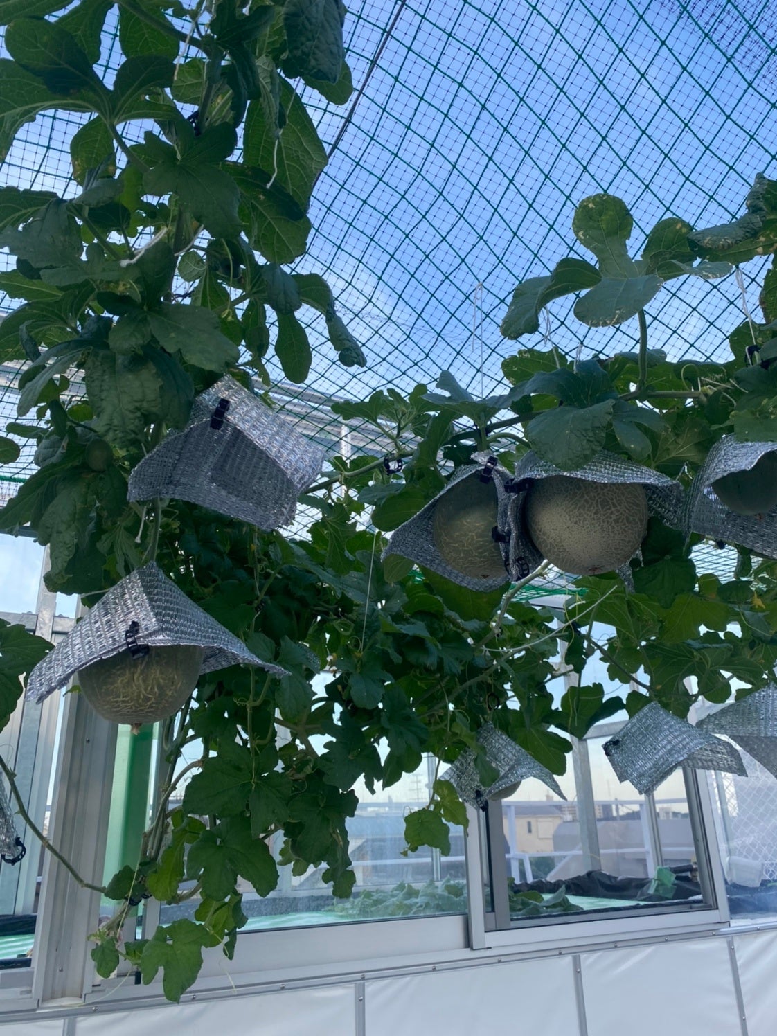 水耕栽培では難しいとされているメロンの栽培に成功し、約50個ほどのメロンが実をつけ、順次食べごろを迎えています。報道関係の皆様にも水耕栽培で育てたメロンの収穫体験と有機肥料、化学肥料で育てたメロンの食べ比べを行っていただきたく、収穫祭を開催いたします。また、「CAFÉ OASIS」のタルトやパフェなどのデザートもご用意する予定です。