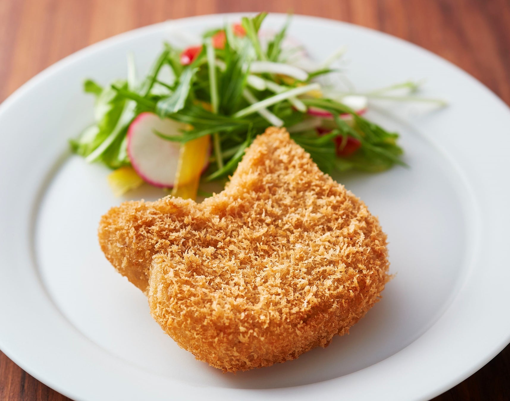 ベーコンの旨みがしっかりと効いた、細切りポテトの食感も楽しいコロッケです。どこから食べるか迷ってしまうほど可愛らしい形は、ねこ好きの方やお子様にも喜ばれそう。