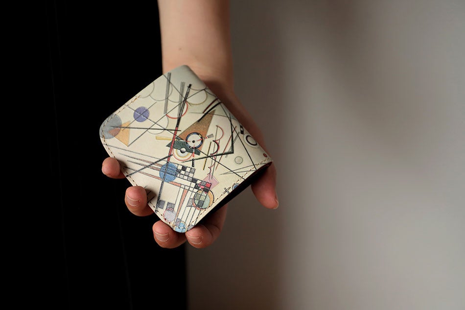 革×アート。抽象画の名作が手のひらサイズの「ミニ財布」に。上質な栃木レザーを使い革職人がハンドメイド。