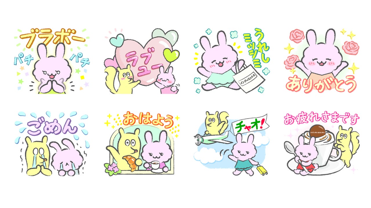 本LINEスタンプは、人気キャラクターきいろいリスの「チロル」さんを生み出しているクリエイター「カナハル」によって作成されたもので、全8個にて展開されます。チロルさんに合わせて、新キャラクターも登場です。日常の多様なシーンで活躍するスタンプはもちろん、「チャオ」などのイタリアを感じるワードから、「うれしミッシミ」などインティミッシミならではのLINEスタンプをご用意。ぜひご活用ください。