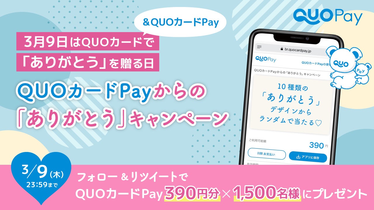 3月9日は「QUOカードで『ありがとう』を贈る日」 あなたの贈りたい「ありがとう」を応援するキャンペーンを3月2日(木)より開催 ~QUOカード&QUOカードPay公式Twitter共同企画~