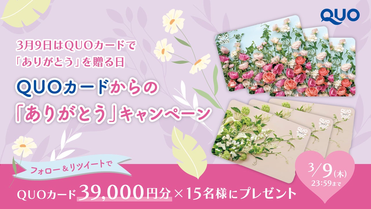 3月9日当日、フォロー&リツイートでQUOカード39,000円分を抽選で15名様にプレゼントします。
