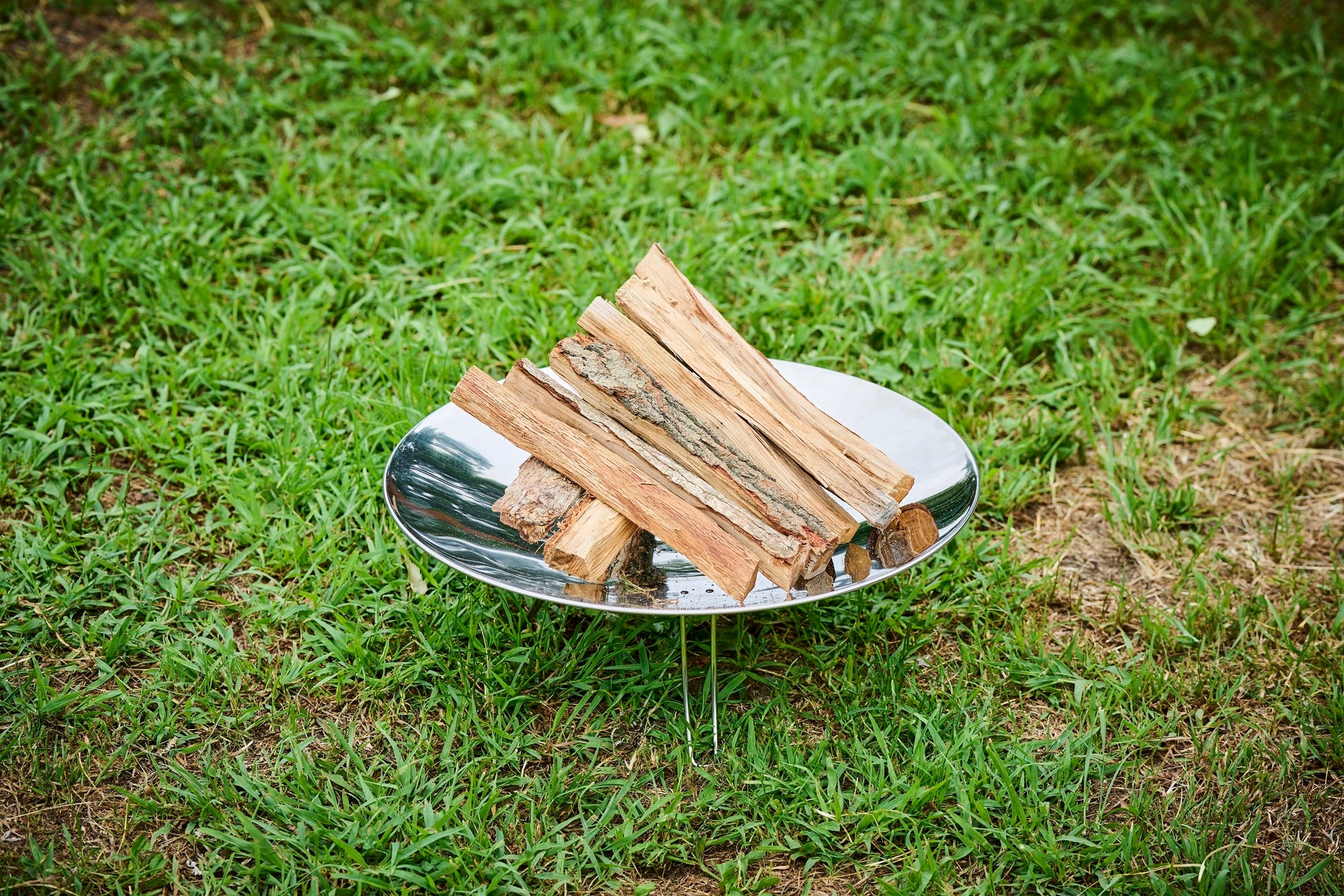 直径60cmの大きくフラットなオーバル型の焚き火台で、自由に焚き木を組むことが可能