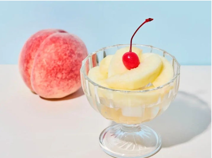 旬の桃を贅沢に閉じ込めたきらめく一品。