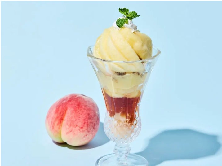 桃まるごと1個を贅沢に使用した、みずみずしい初夏のごほうびパフェ。