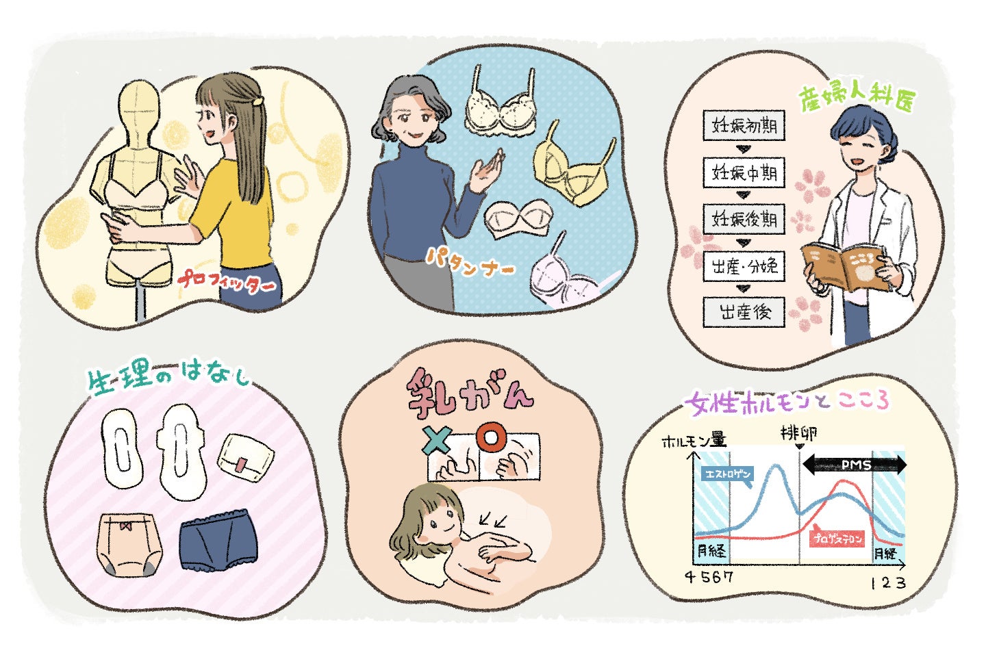 サイズがあわない、正しいつけ方がわからない、自分のからだのことを知らないー。人に言えない下着や体の悩みの多くは「知らない」ことに起因します。下着の学校ではふだん学ぶ機会の少ない、そんな知識が学べます。