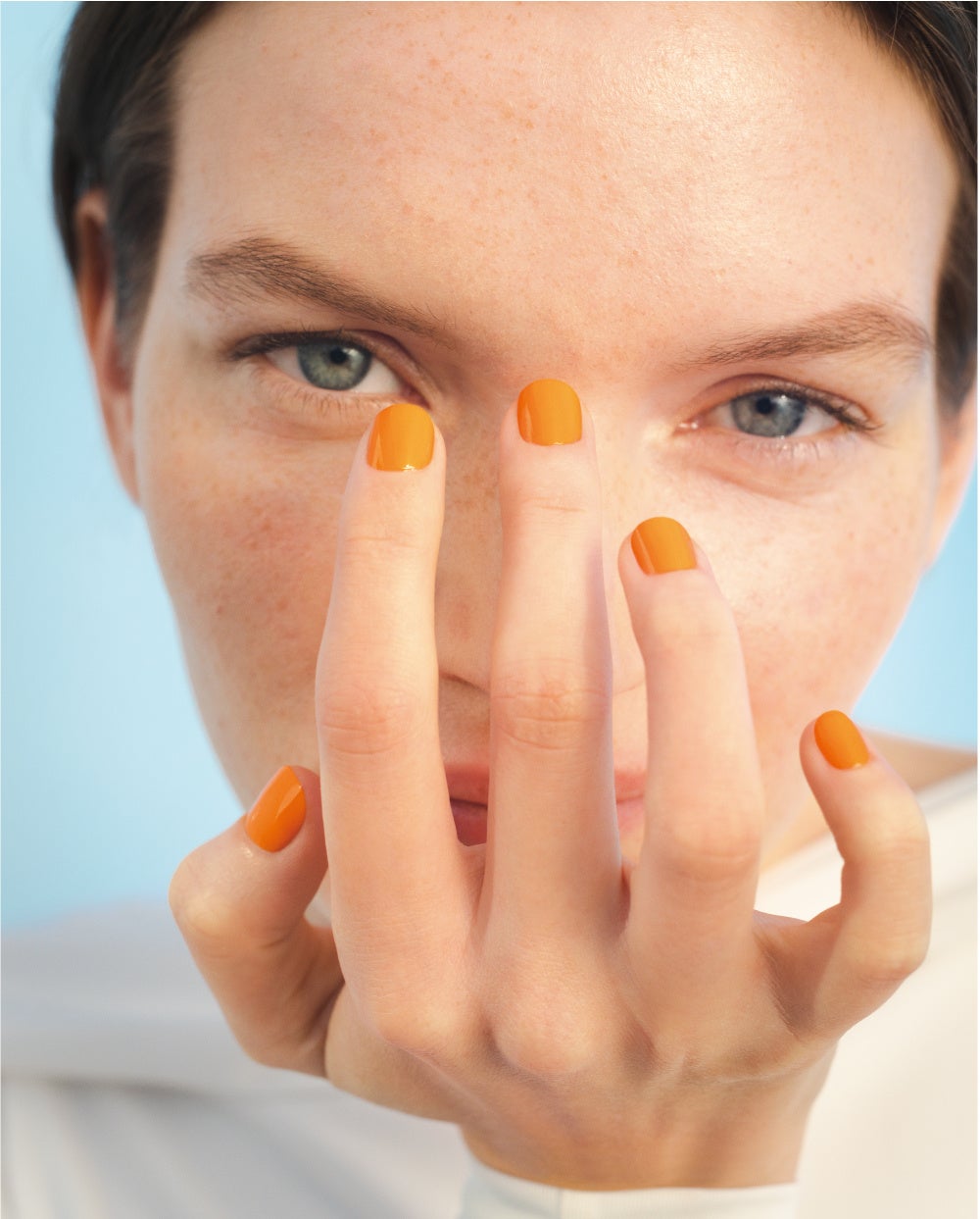 やわらかな春の陽だまりと溶け合う、クリアオレンジ。単色使いであたたかみのある指先を、あるいはゴールドや