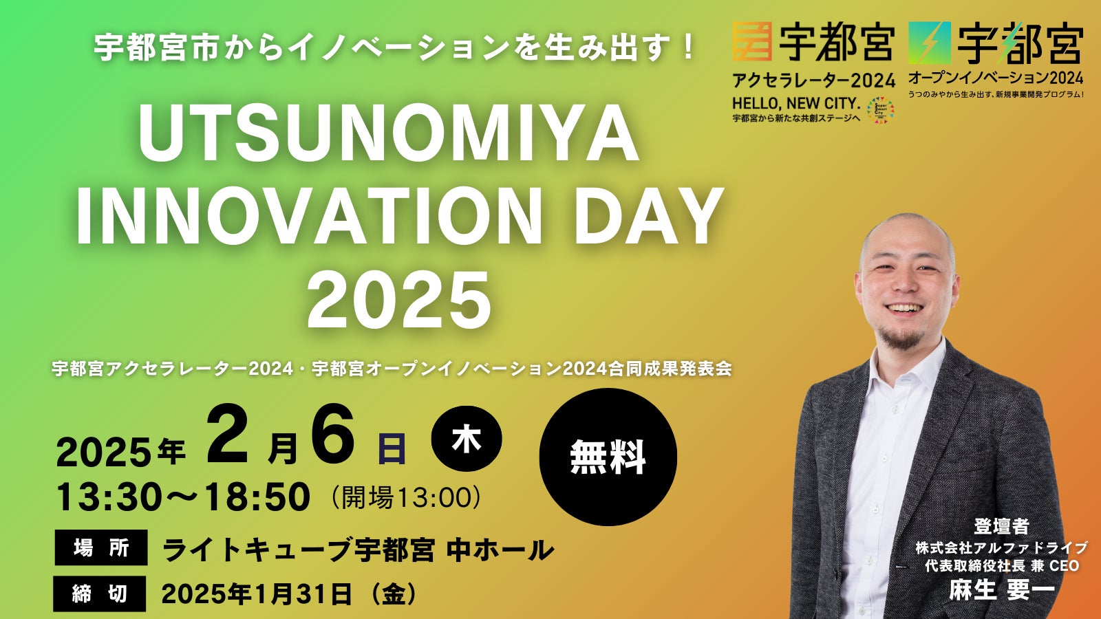 【宇都宮市×AlphaDrive】「UTSUNOMIYA INNOVATION DAY 2025(UID2025)」を2月6日に開催!