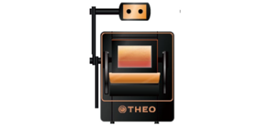 THEO(テオ)は、ユーハイムが開発した、AI を搭載したバウムクーヘン専用オーブンです。職人の焼成メカニズムを解析し、それを学習させたAIによって、バウムクーヘンの焼き上がり状態を確認しながら自動的に調理することができます。熟練の菓子職人のほか、ロボット工学の研究者、AI の専門家、デザイナーなど、様々なプロフェッショナルにご協力いただき、5年がかりで誕生しました。今回そごう広島店では店内厨房に2台のTHEO(テオ)が常勤し、くちどけなめらかなほっとする味わいの焼き立てバウムクーヘンをご用意いたします。