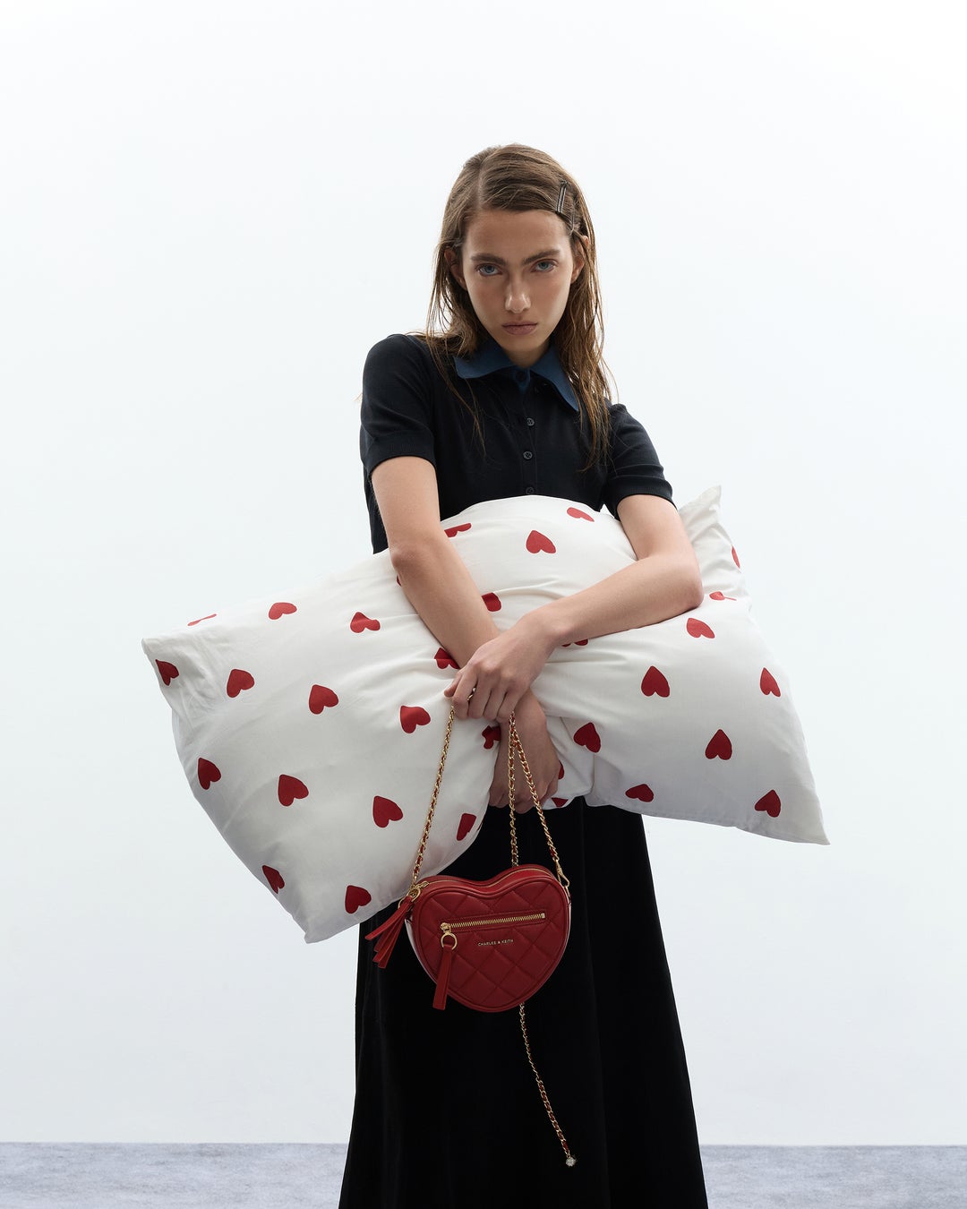 「Love comes in many shapes(愛のかたちは、ひとつではない)」というメッセージのもと、ロマンティックなムードを軸に、さまざまな愛のあり方を表現しています。レーストリムやハートシルエット、リボンディテールといった象徴的なモチーフを取り入れつつ、洗練されたバランスで仕上げることで、CHARLES & KEITHらしいモダンな表情を生み出しています。